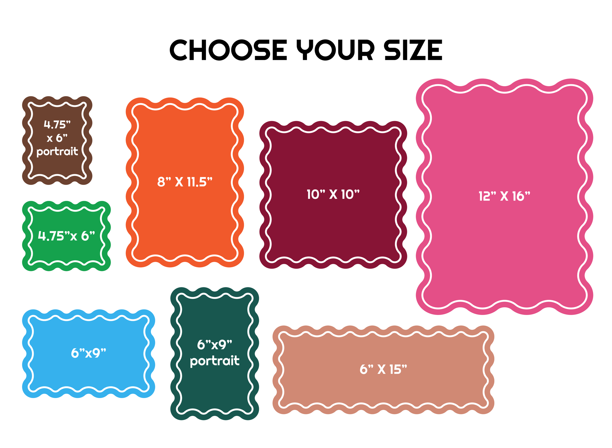 - 6" x 9" inches (landscape or portrait)