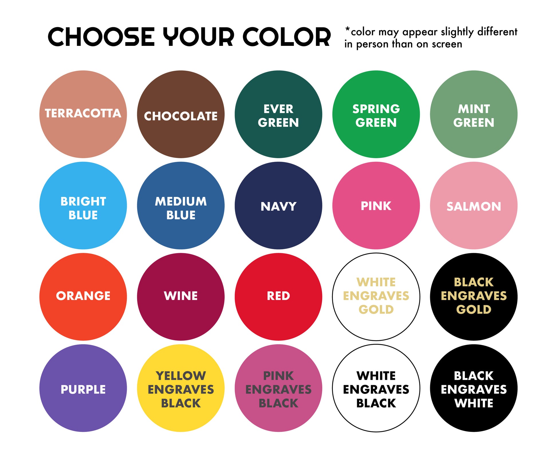 - All options are engraved white text (except for gold on white is painted for a better effect).