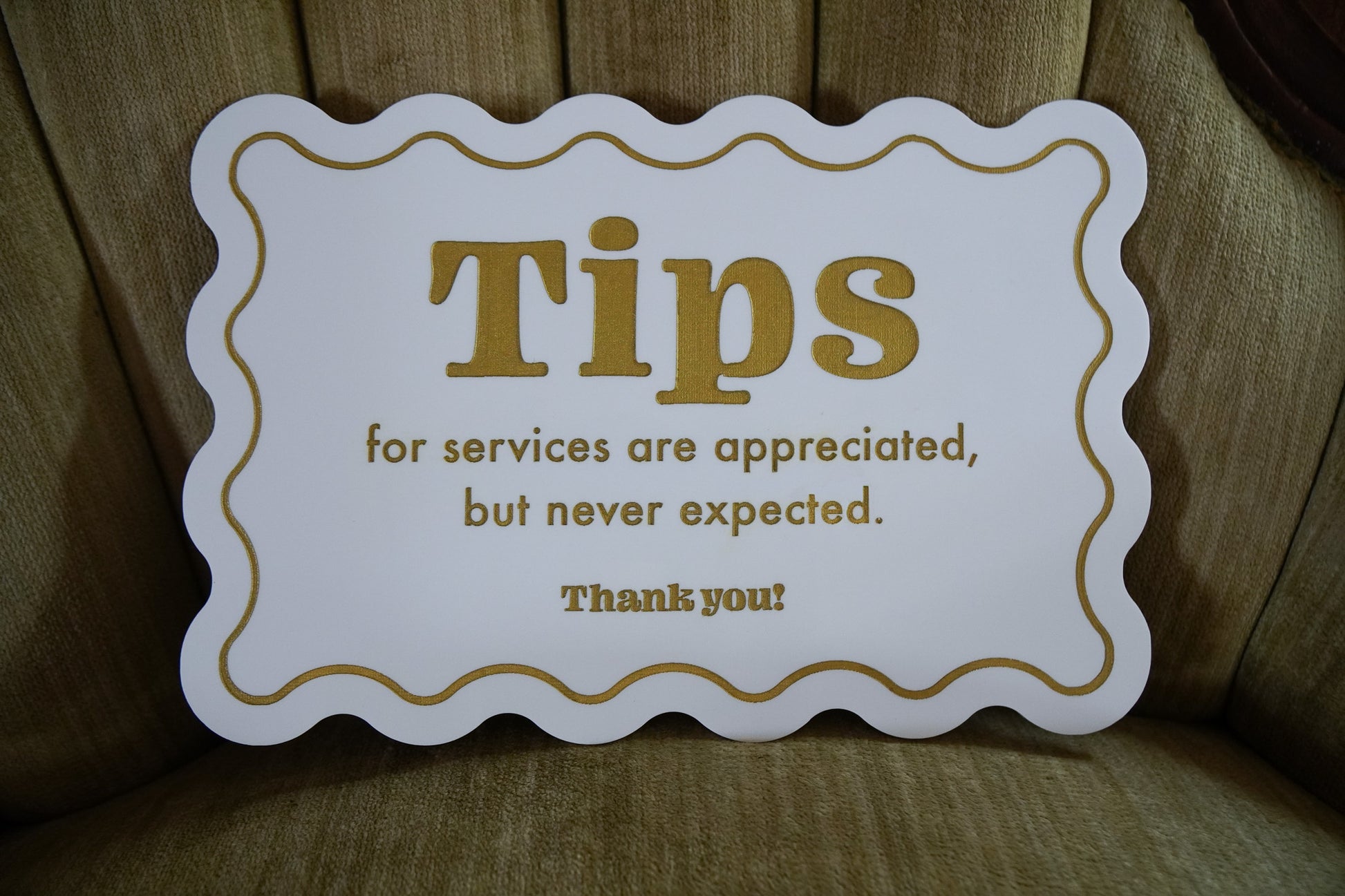 Our custom scalloped edge acrylic sign is a design-forward, personalized sign made from durable, weatherproof acrylic. Designed to work indoors or outdoors, this engraved sign is perfect for homes, businesses, weddings, parties, and gifts.
